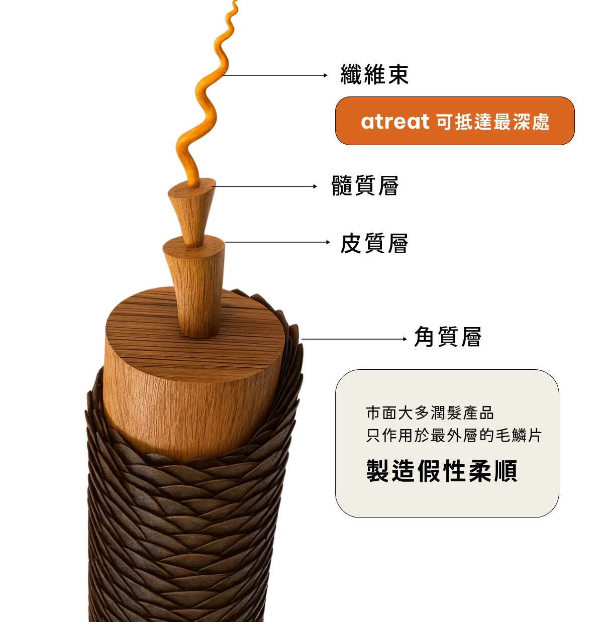 atreat 將科學修護邏輯拆解成最關鍵的四大步驟,從根本重建你的髮絲。